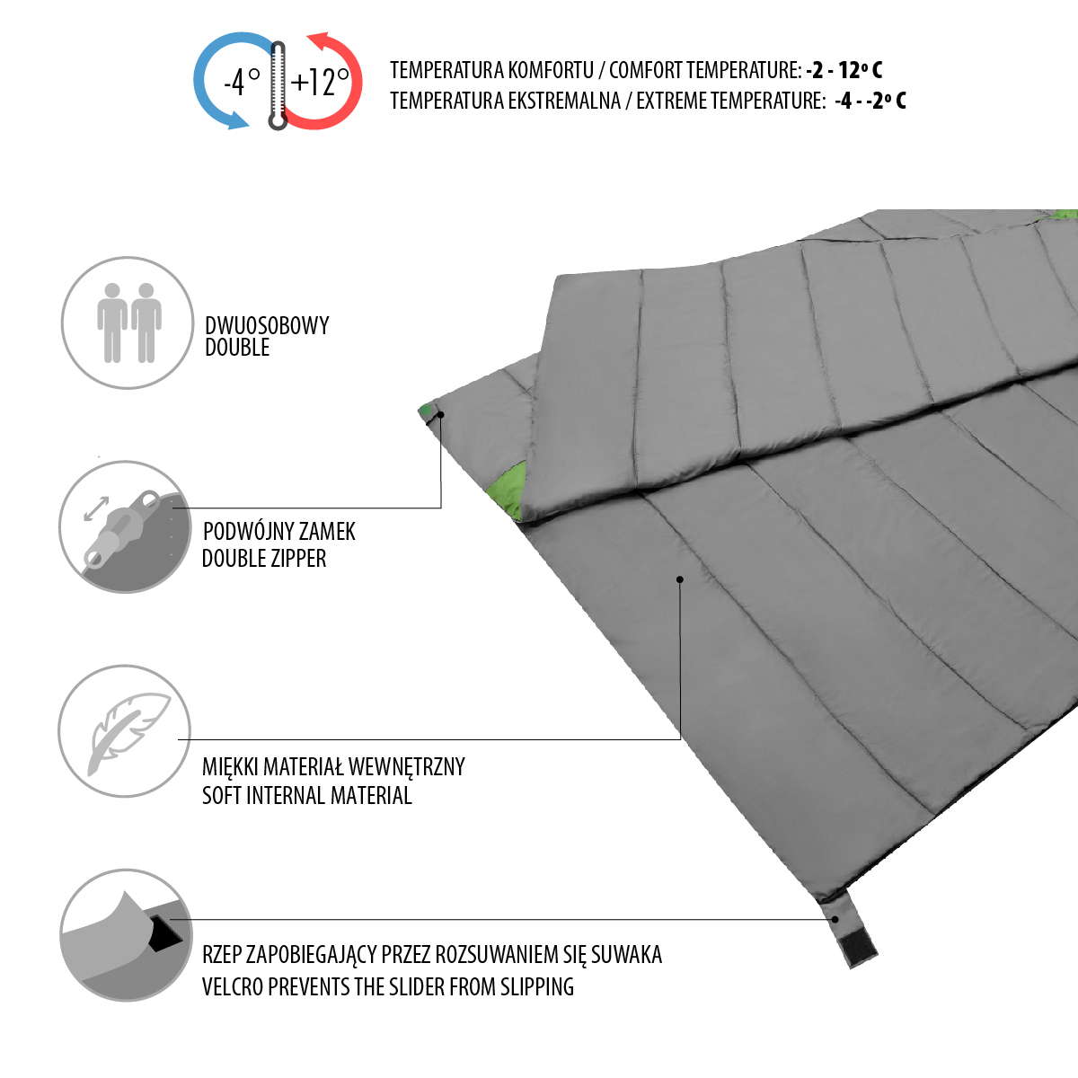 Dekový, spací pytel NILS Camp NC2011 byl vyvinut speciálně pro dvě osoby. Dvojitý spací pytel je ideálním řešením pro lidi, kteří si chtějí užít společného pohodlí při kempování, turistice a mnoha dalších outdoorových dobrodružstvích.