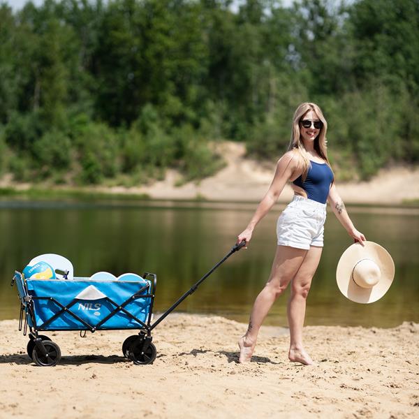 Turistický vozík NILS Camp NC1606 125l – univerzální partner do každého dobrodružství. Ať už plánujete rodinnou dovolenou na pláži, relaxační víkendové kempování nebo energický výlet na hudební festival – tento vozík je kvintesence funkčnosti a stylu, vytvořený tak, aby vás doprovázel na různých místech a v různých situacích.