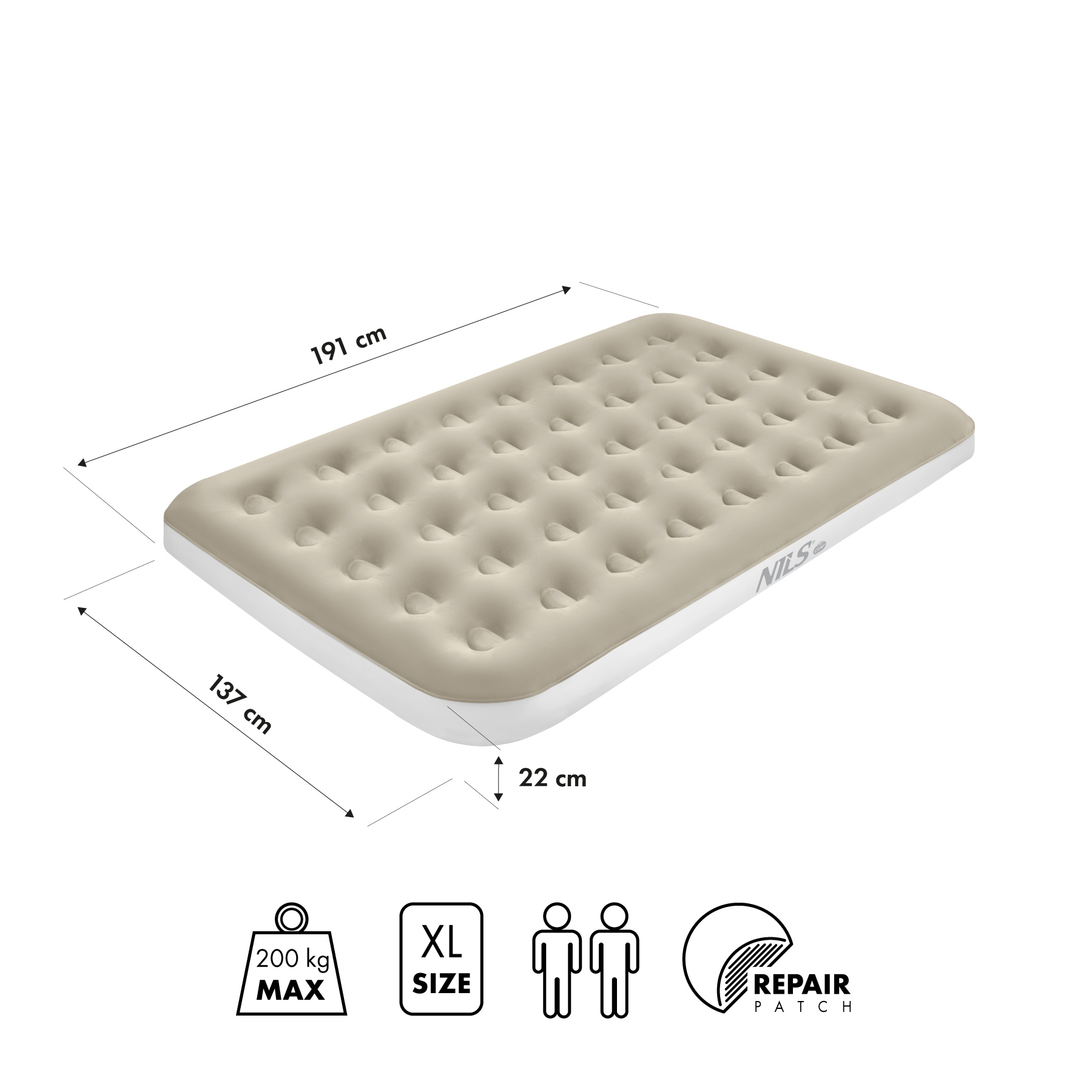 Nafukovací matrace NILS Camp NC2802 béžová 191x137x22 cm