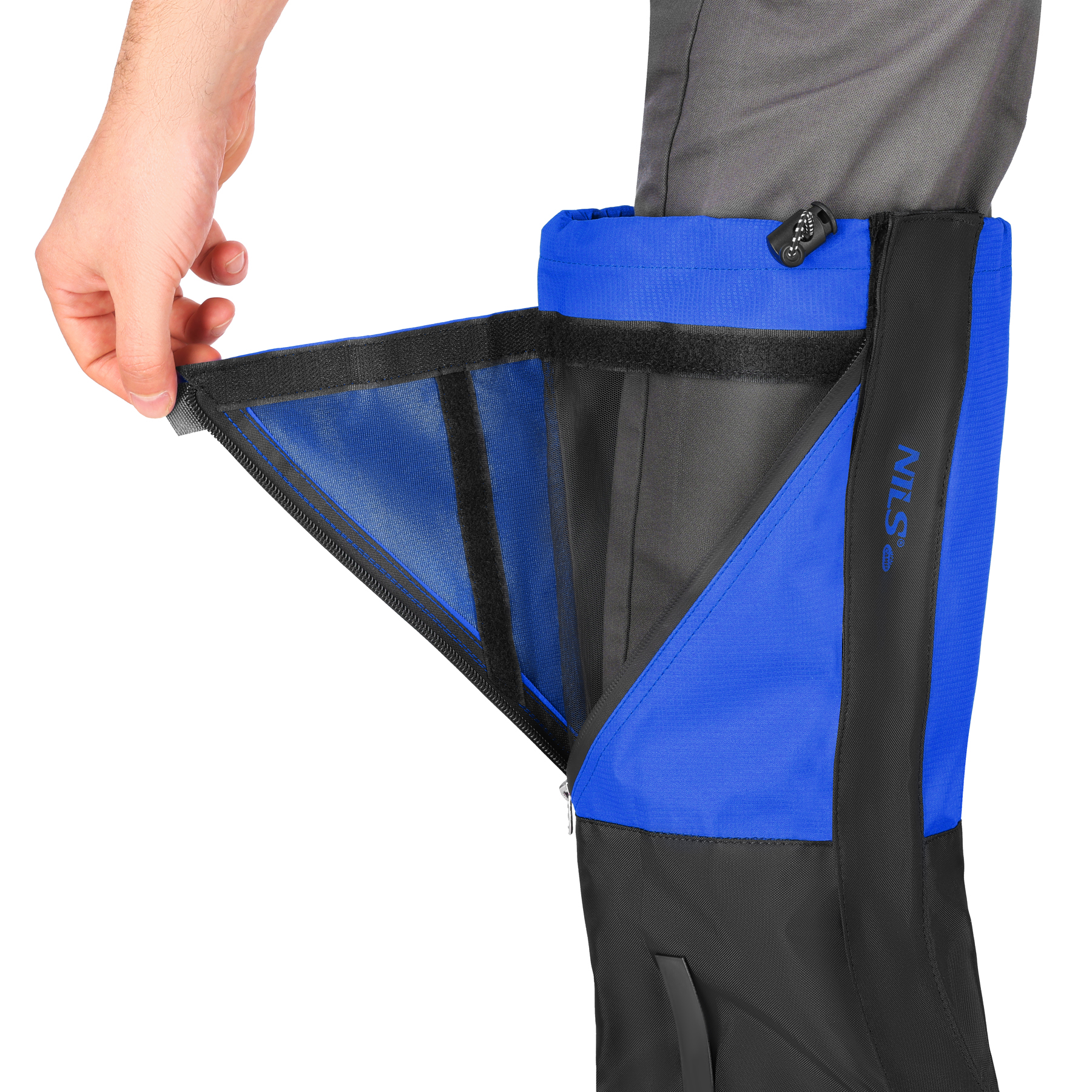 V horní polovině návleků je umístěna klopa na zip a suchý zip, pod kterou se nachází síťovina zajišťující odvětrávání nohy v případě, kdy se zrovna nebrodíme hlubokým sněhem. Klopu lze navíc jednoduše založit do postranní kapsy, aby při chůzi nijak nepřekážela, což zvyšuje pohodlí a praktičnost návleků.