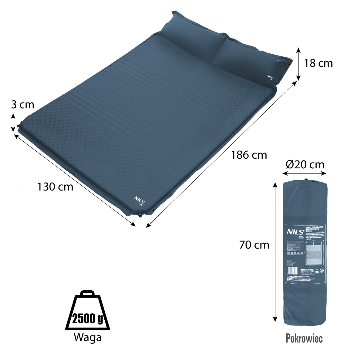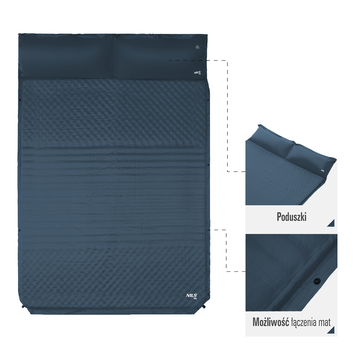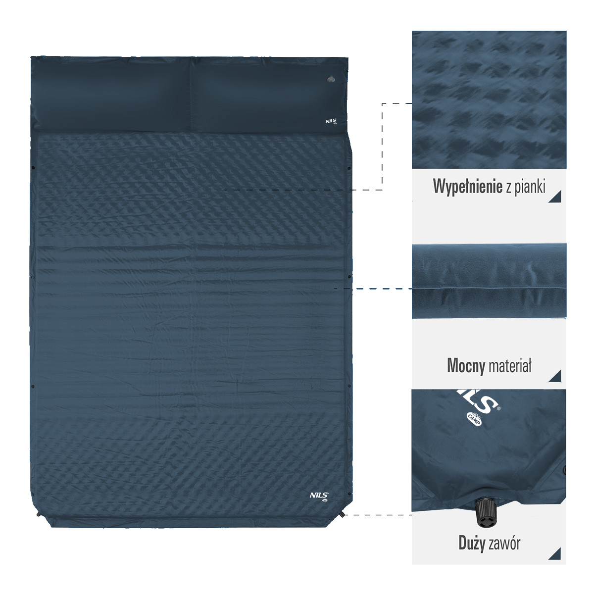 NC4060 NILS Camp je široká samonafukovací karimatka pro dvě osoby, která představuje ideální řešení pro kempování, spaní ve stanu nebo relaxaci na pláži. Nabízí kombinaci pohodlí, jednoduchého použití a praktických detailů pro každou outdoorovou výpravu.