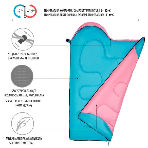 Spací pytel NILS Camp NC2007 Junior je ideální volbou pro všechny mladé turisty, kteří se během kempování chtějí vyspat pohodlně a v teple. Tento model byl navržen pro děti. Bude ideální pro výlety pod stan, tábory, přenocování v přírodě nebo rodinné kempování.